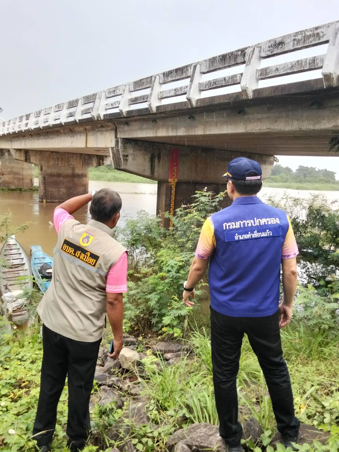นายก อบต.สงเปือย คณะผู้บริหารตำบลสงเปือย ติดตามสถานการณ์น้ำชีบ้านดอนขะยอม เพื่อเตรียมการและหาแนวทางป้องกันหากเกิดอุทกภัย