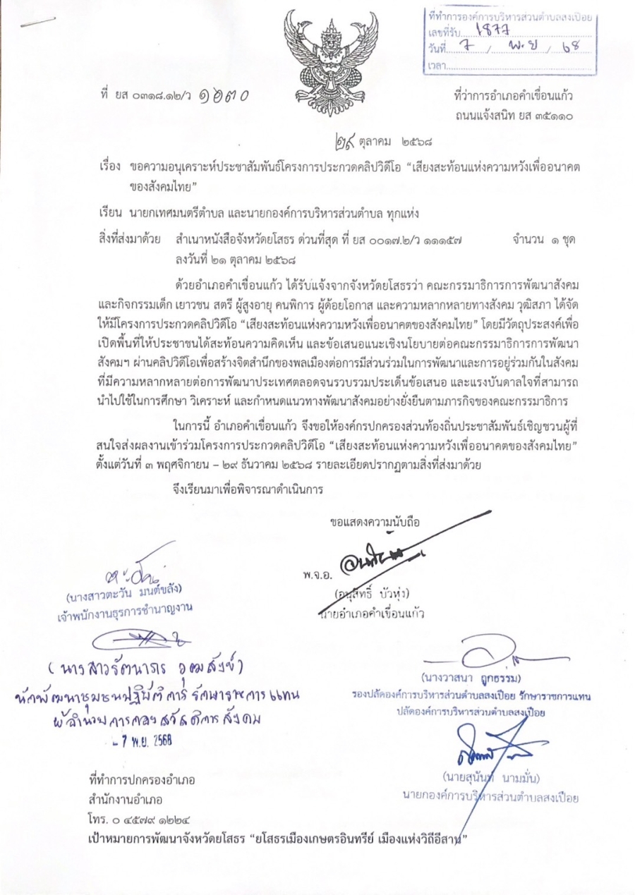 จัดโครงการ ประกวดคลิปวีดีโอ “เสียงสะท้อนแห่งความหวังของคนไทย”